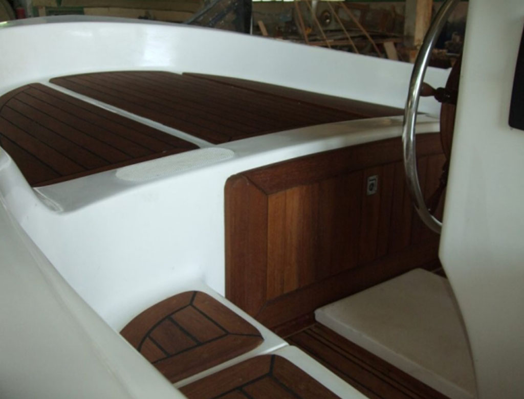 STANDART DONANIM:  Paslanmaz çelik şaft, yağlama gresörlüğü, salmastrası, pirinç pervane, krom-nikel dümen yelpazesi,  ağaç motor kasası, sintine pompası ve bağlantısı, iskele-sancak feneri, elektrik tesisatı, sviç ve sigortaları, motor montajı, motor bağlantısında vana, kepçe, egzoz sistemi çıkışı, waterlock, goose neck, hortumları/kelepçeleri/bağlantısı, direksiyon simidi/sistemi ve kablosu, rimot kontrol sistemi ve kablosu, ön demir, çekme makarası, baş ve arka taraf ip bağlama halkası, krom-nikel U çeki demiri, 25 litre yakıt deposu, bayrak direği, 90 amper akü, akü devre kesici.